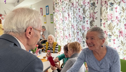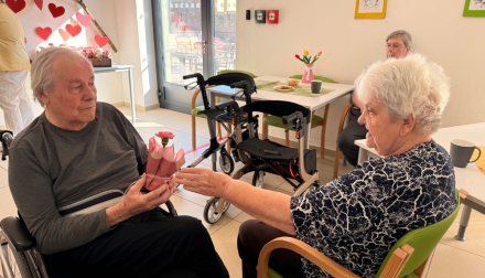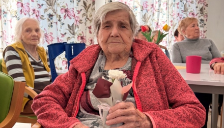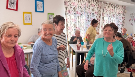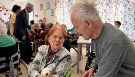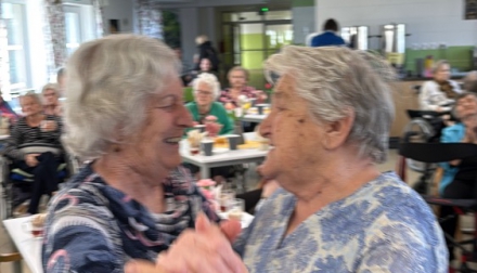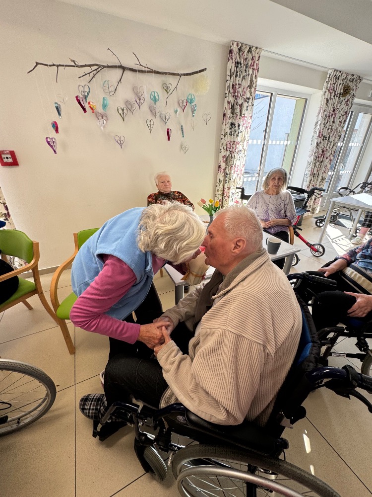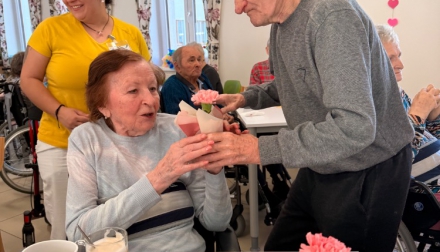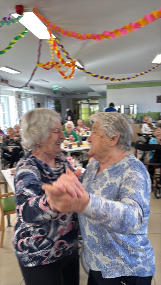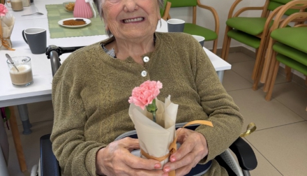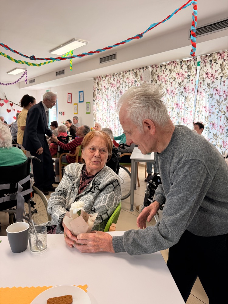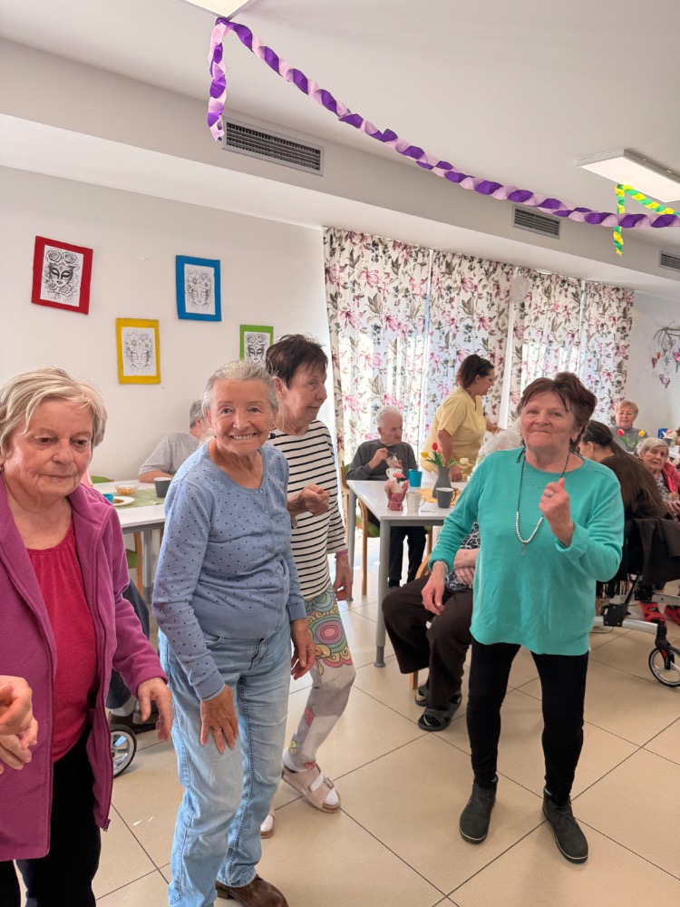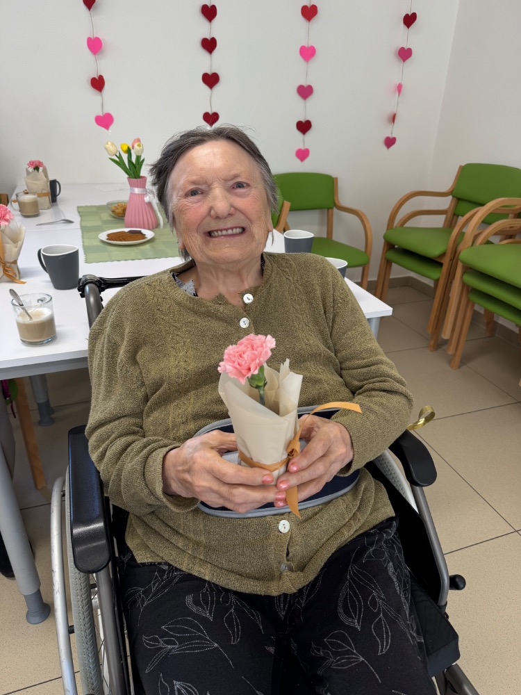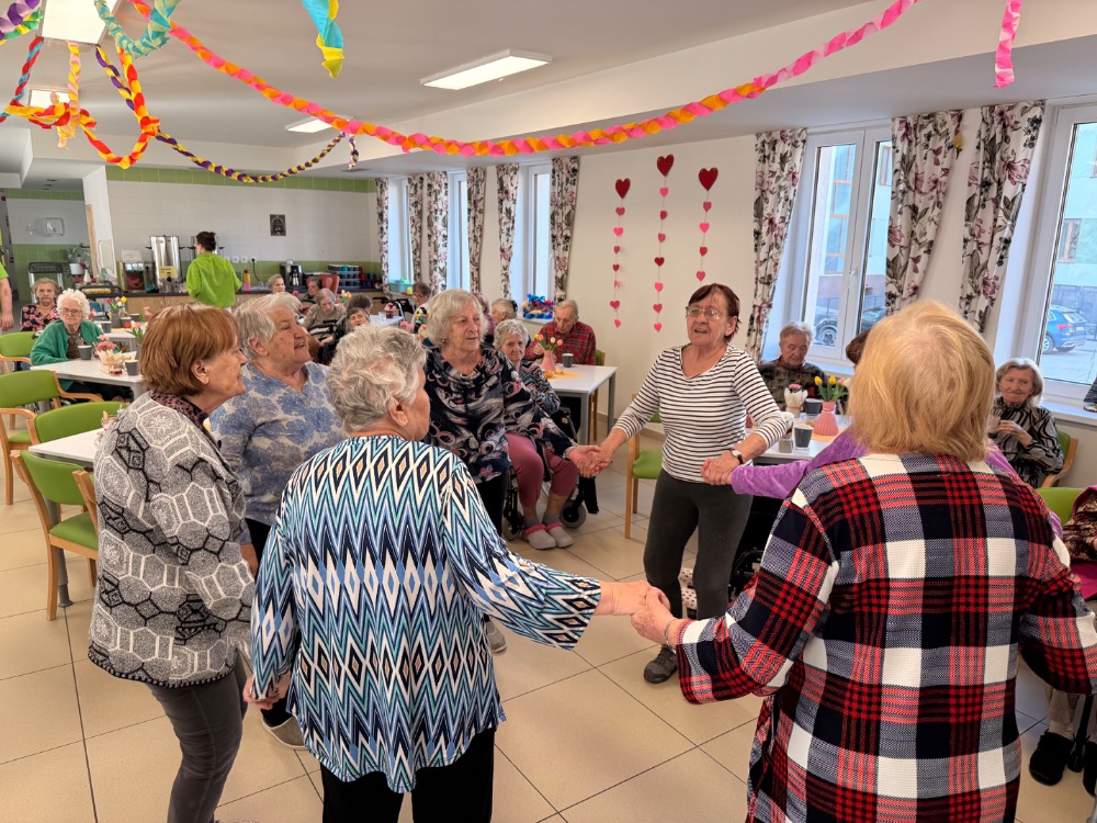Odpoledne pokračovalo slavnostní atmosférou – klienti rozdávali květiny, nechyběla ani výborná svačinka připravená naší kuchyní a samozřejmě ani tanec, který k takové oslavě neodmyslitelně patří.