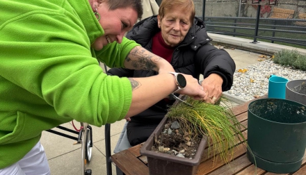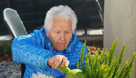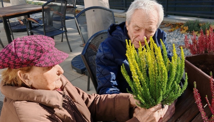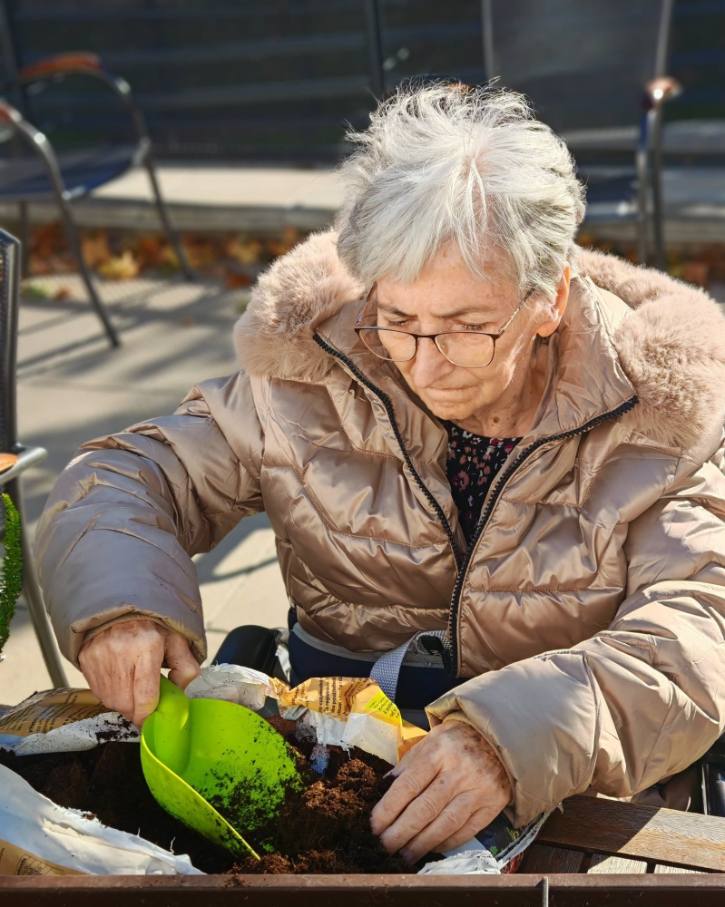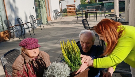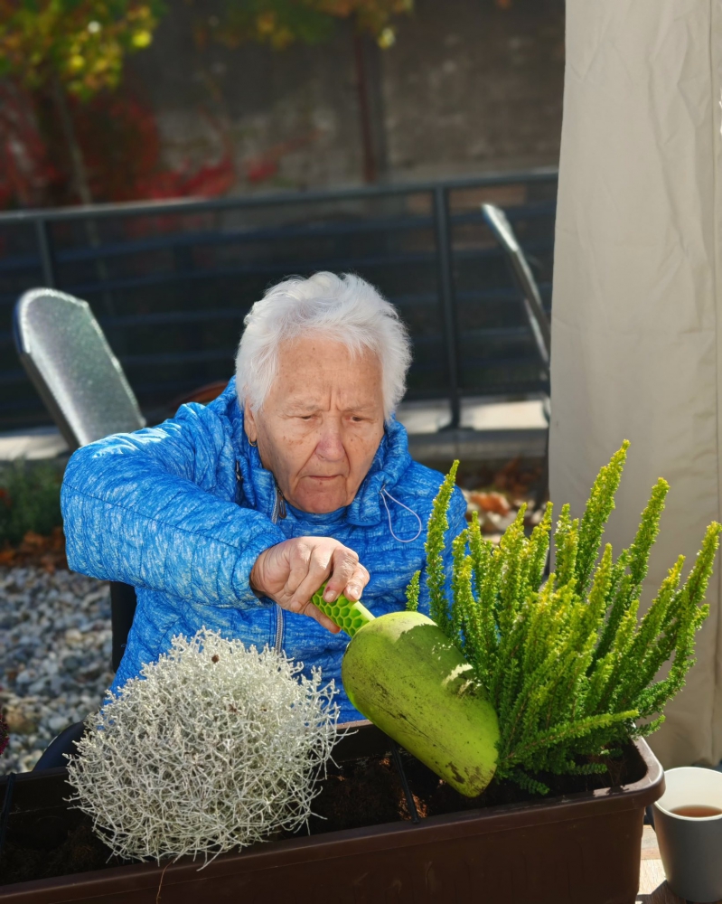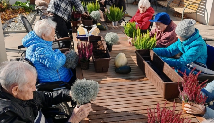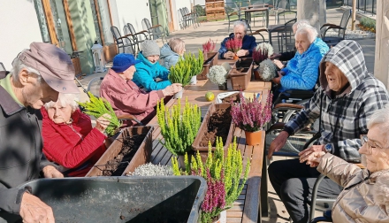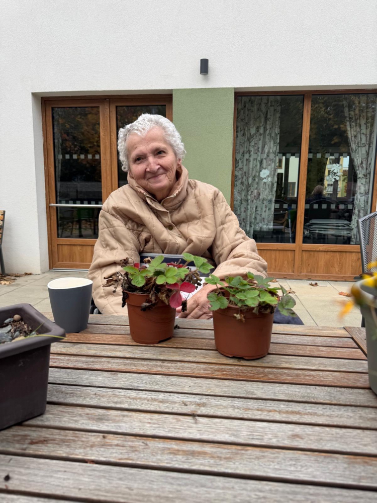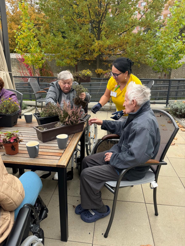 V průběhu týdne jsme se rozhodli obměnit venkovní výzdobu a společně jsme vysadili podzimní truhlíky s vřesy. Klienti si při tom s úsměvem zavzpomínali na své zahrádky a při poslechu slovácké hudby si povídali o tom, co všechno kdysi pěstovali.