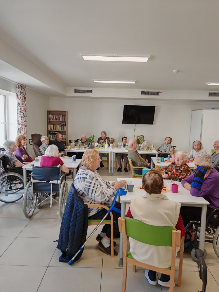 Na konci října jsme si v domově opět užili velkou oslavu. Tentokrát jsme slavili naše říjnové oslavence – nechyběla voňavá káva, sladké zákusky ani dobrá nálada. Společně jsme si zazpívali spoustu oblíbených písniček a užili si příjemné dopoledne.