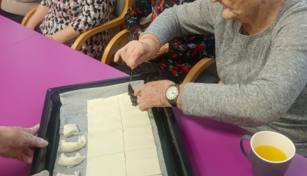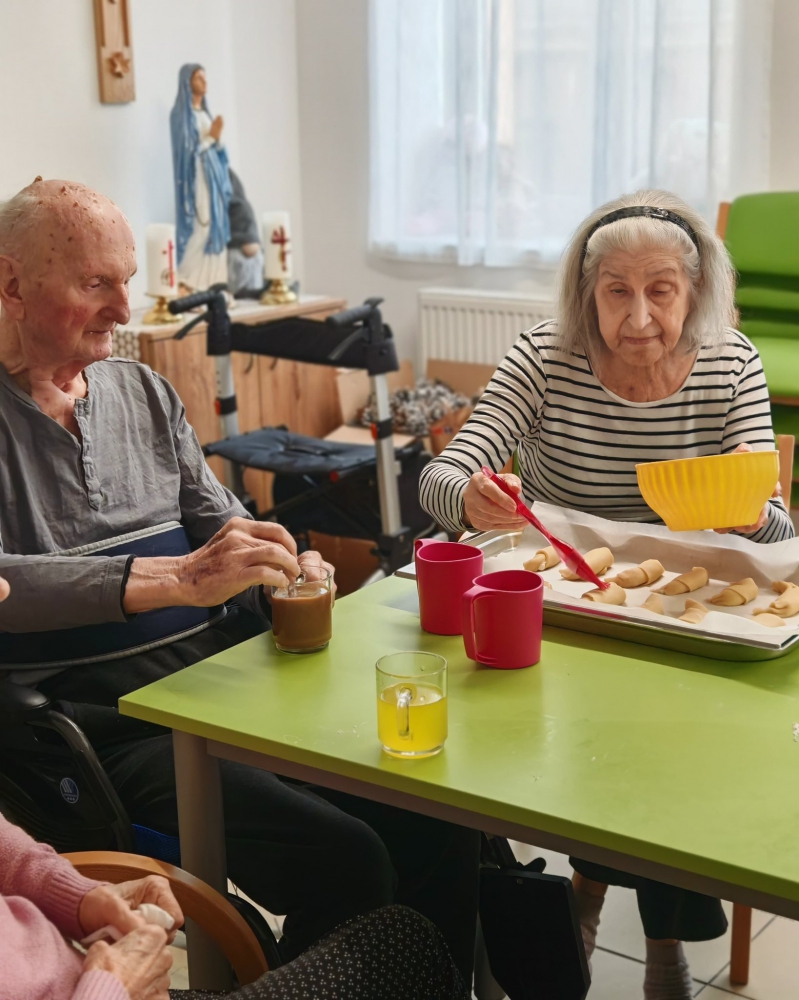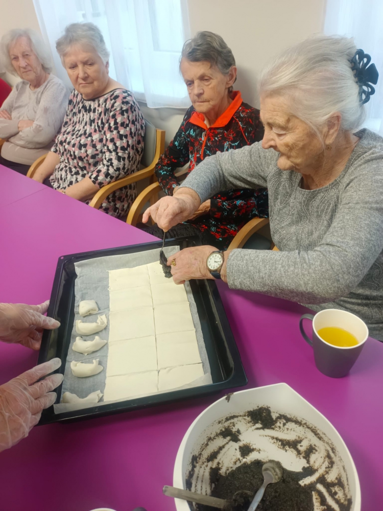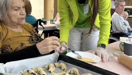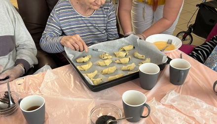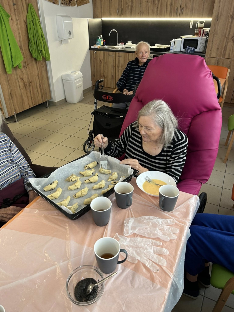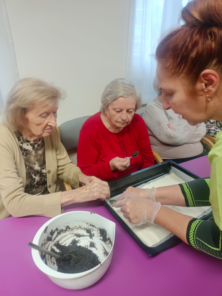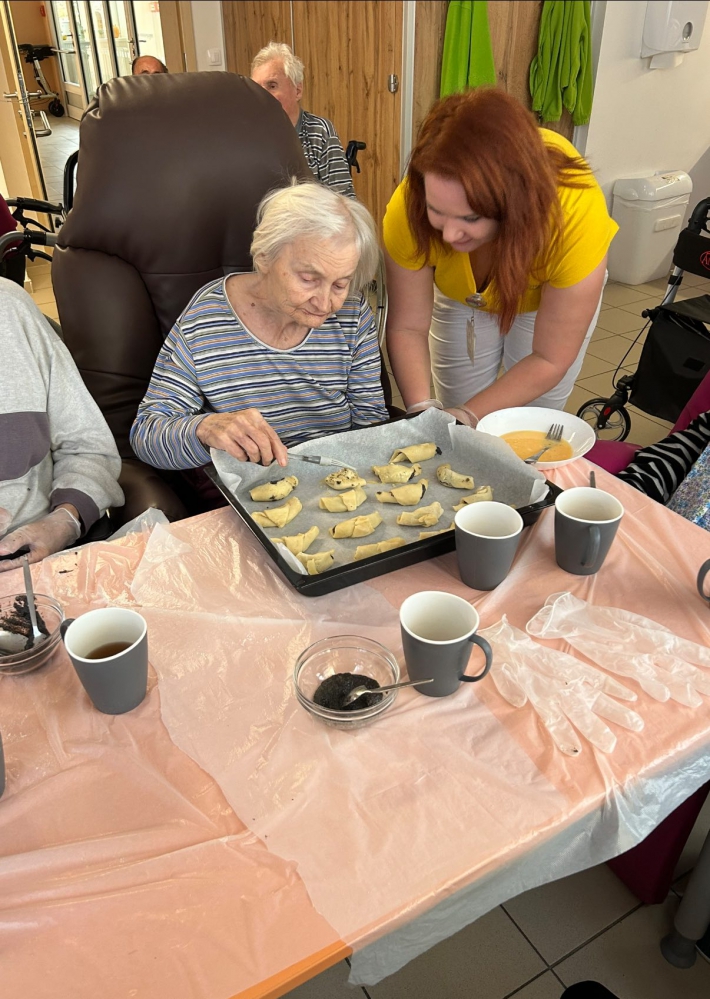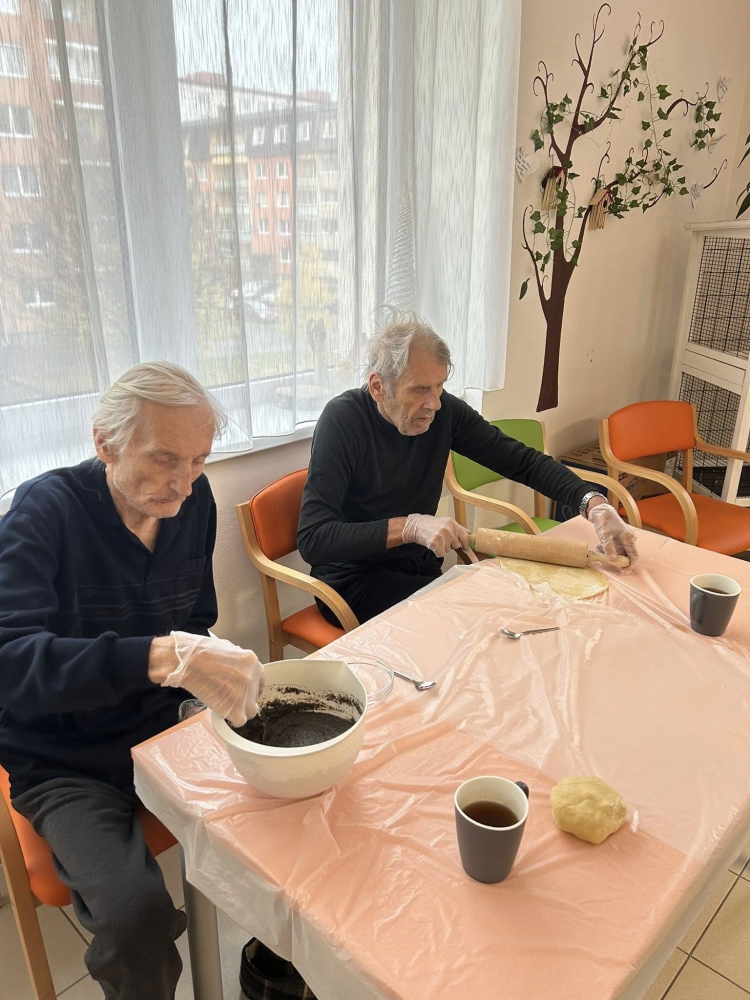 Tentokrát jsme s klienty prožili příjemné svatomartinské posezení. Společně jsme si upekli svatomartinské rohlíčky – pro některé to byla úplně první zkušenost s pečením rohlíčků. K tomu nechyběl jablečný mošt ani malé pivečko. Celé dopoledne se neslo v duchu povídání o svatém Martinovi a nebo o pečení svatomartinské husy.