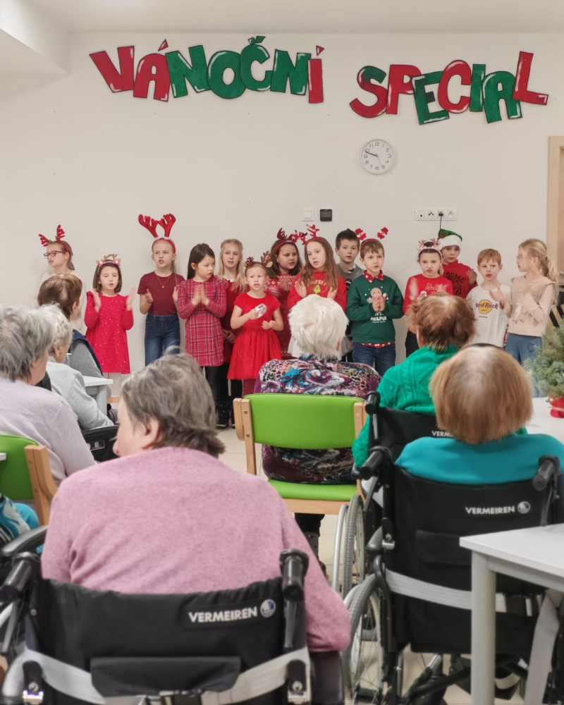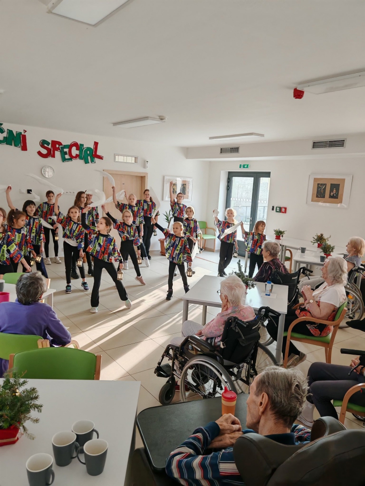 Tento týden nás potěšily milé návštěvy dětí ze Základní školy U Tenisu, ze Základní školy Trávník a také z mateřské školy církevní – připravily si pro naše klienty krásná hudební a taneční vystoupení, předčítání i milé dárečky, které naše klienty moc potěšily. Moc děkujeme za milé návštěvy.