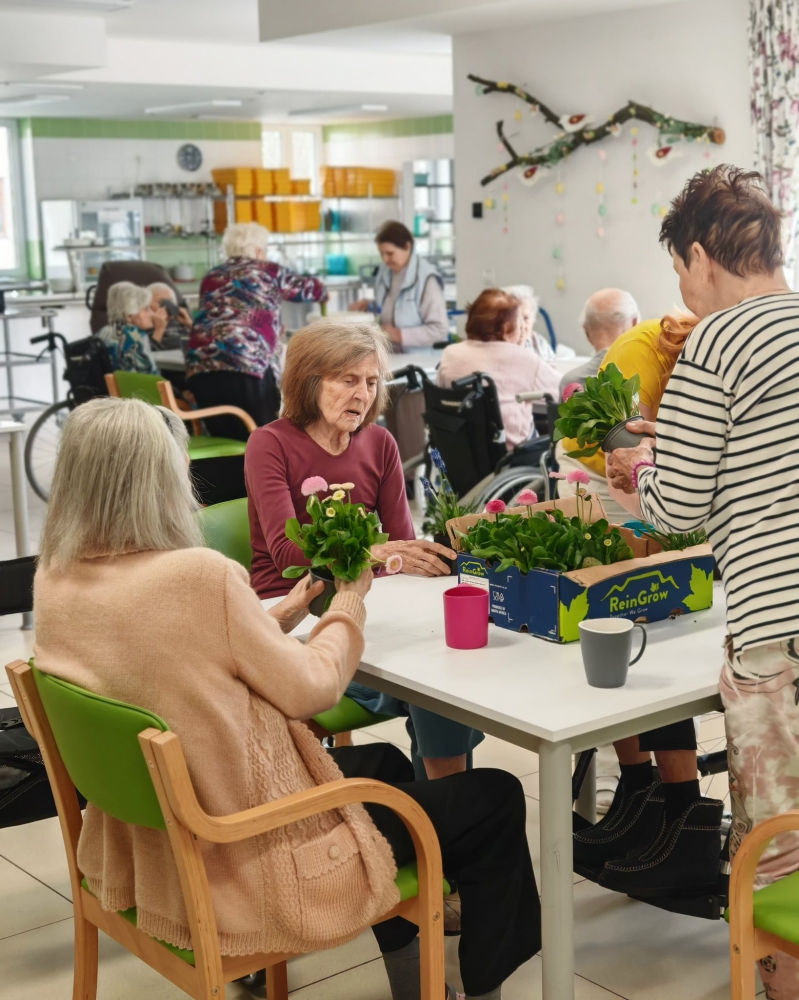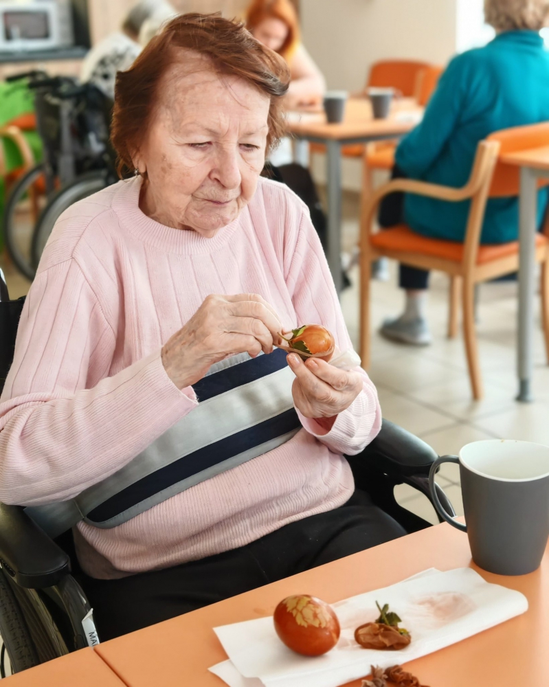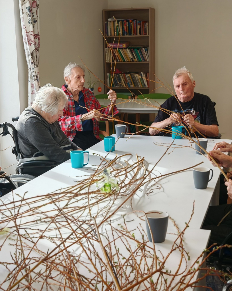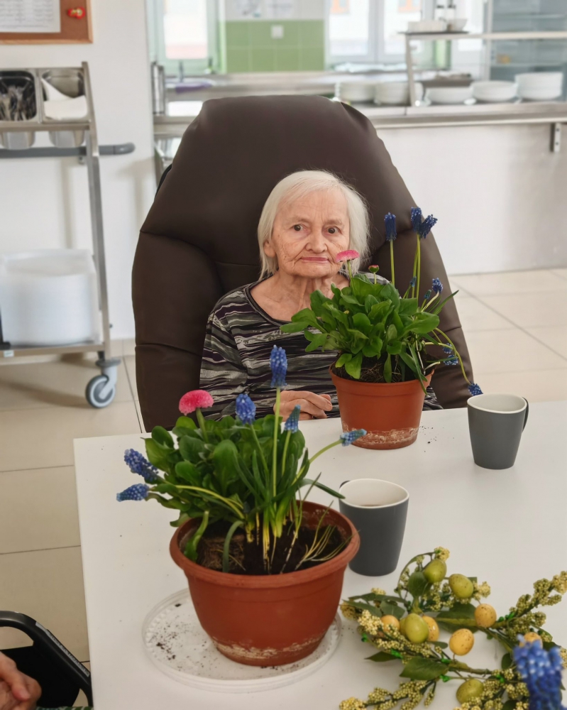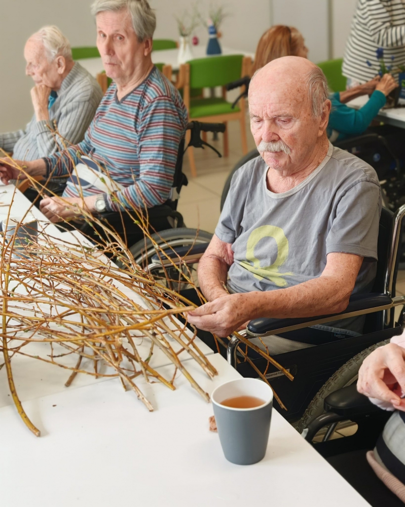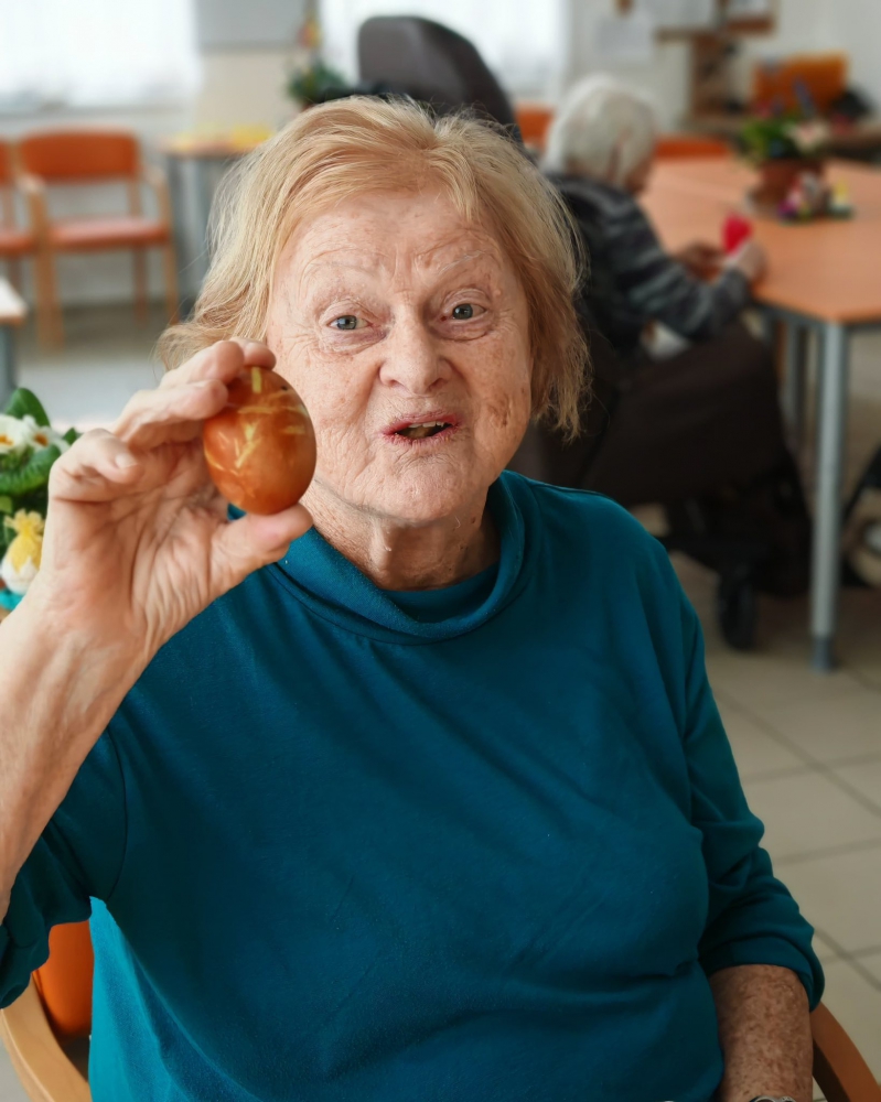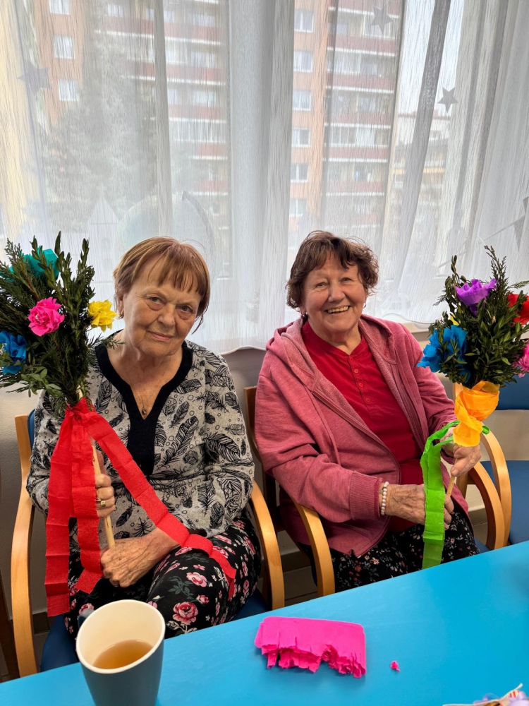 Naše letošní Velikonoce byly opravdu pestré a plné společných zážitků. Společně s dámami jsme se pustily do barvení vajíček, zatímco pánové se s nadšením věnovali pletení tatarů. Nechybělo ani tradiční sázení osení, které nám krásně připomnělo přicházející jaro.