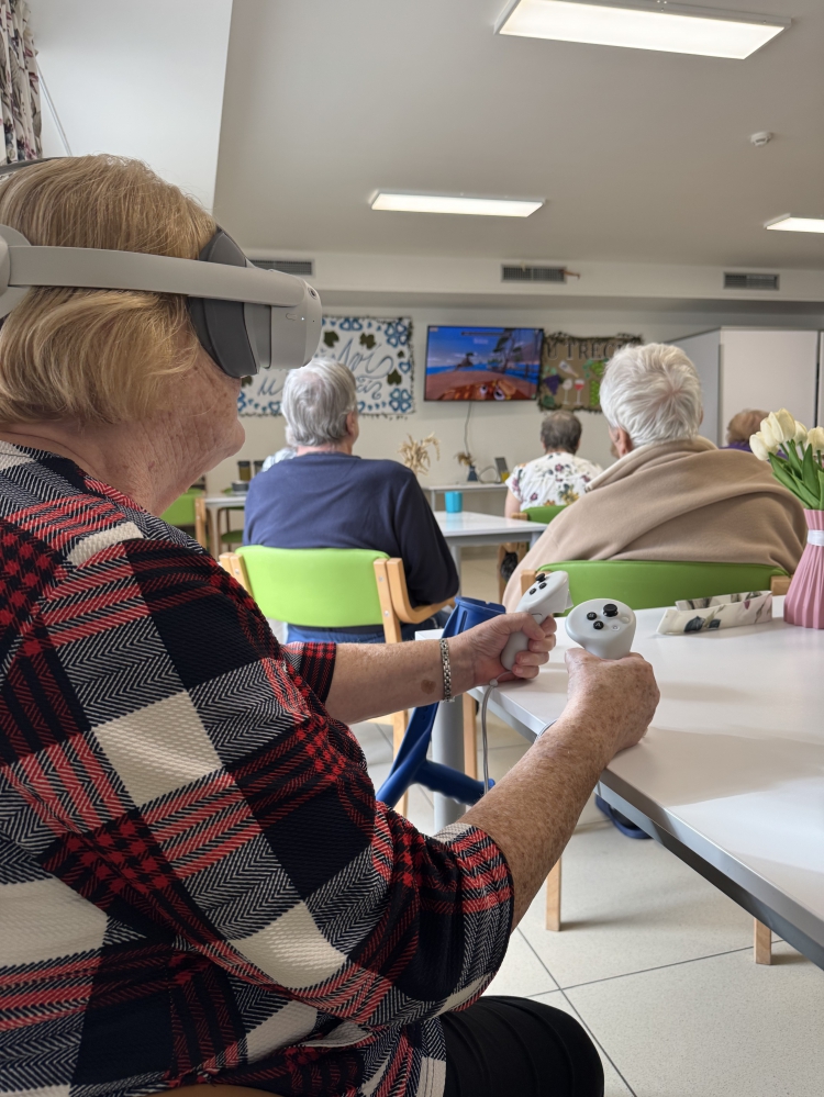 U nás v domově jsme se zase posunuli o krok dál. Nedávno nás navštívili s ukázkou virtuální reality, kterou si naši klienti mohli sami vyzkoušet. Prostřednictvím různých her trénovali jemnou motoriku, pozornost i kognitivní funkce – a zároveň si užili spoustu zábavy.