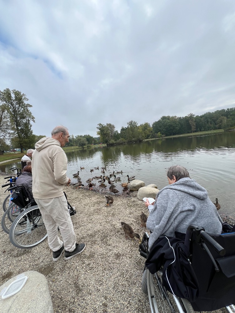 Jako první výlet jsme si užili procházku u laguny, kde jsme se prošli kolem vody a nakrmili kačenky. Auto pojme dva klienty na invalidním vozíku, dva pasažéry na sedadle a samozřejmě i řidiče.