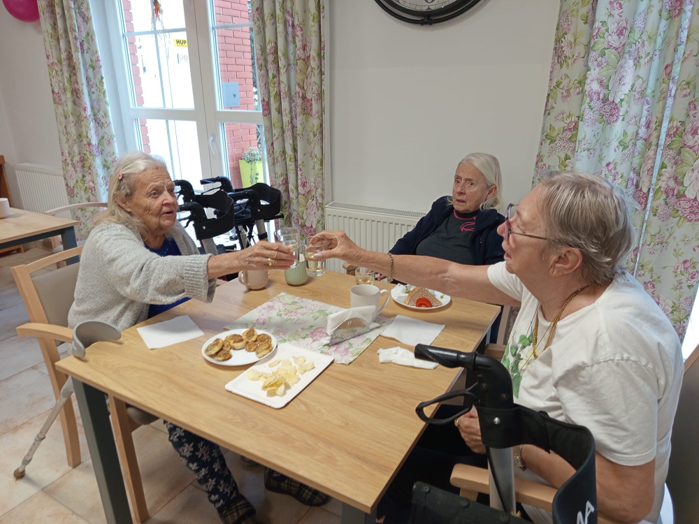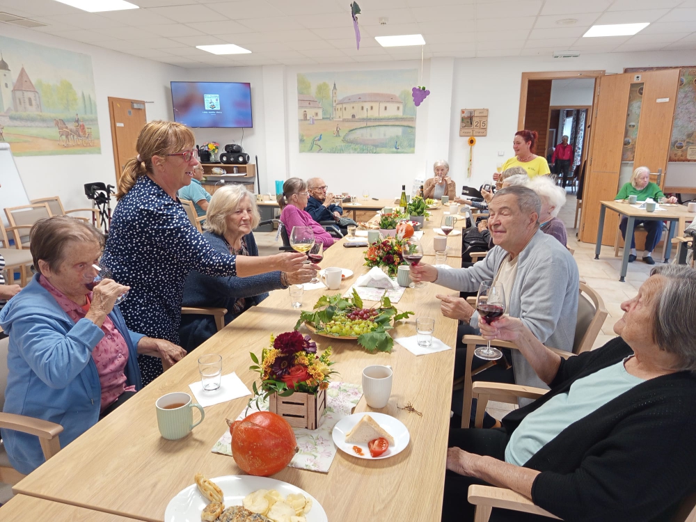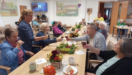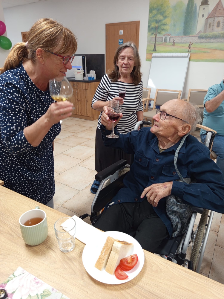 Dopoledne probíhalo v duchu příprav dobrot, bez kterých se žádná narozeninová party neobejde. Dobré víno, jídlo i dárečky pro oslavence přinesly velkou radost. Oslavenci se cítili výjimeční, protože právě oni byli ten den středem pozornosti. Hudba, zpěv rozzářili oči všech přítomných. Personál se postaral o to, aby tento den měl punc jedinečnosti a zanechal v srdcích klientů pocit, že jsou důležití a milovaní.