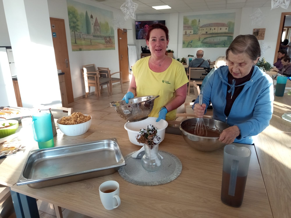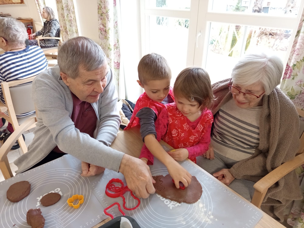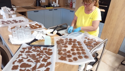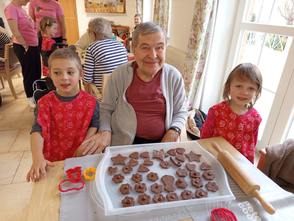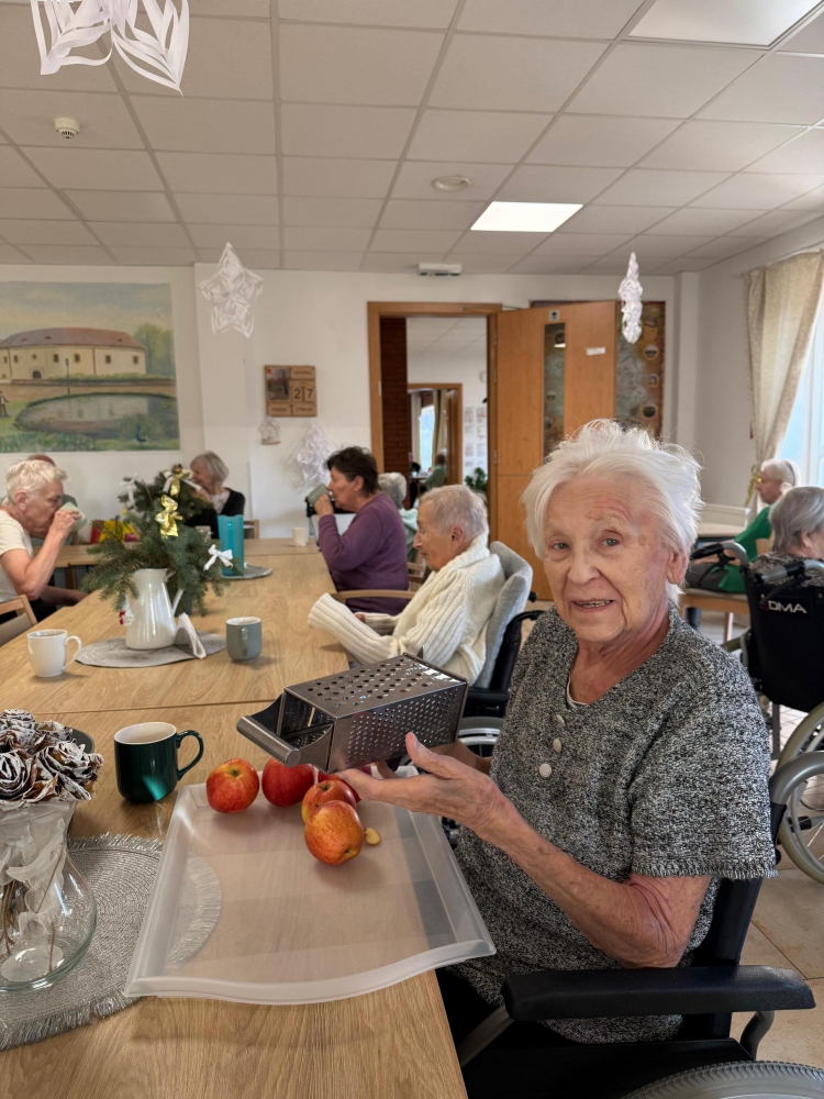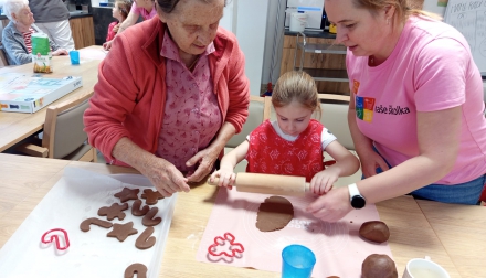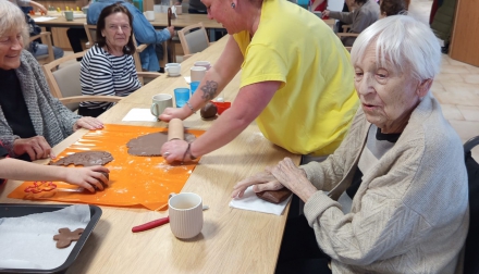 Spojili se totiž s dětmi z mateřské školy, které za námi pravidelně dochází a tentokrát přišly pomoci s pečením perníčků. Společné setkání generací přineslo do Domova mnoho úsměvů a dojemných chvilek. Klienti s velkým nadšením ukazovali dětem, jak se tradiční perníčky připravují, a děti zase přinesly do Domova radost, energii a spoustu zvědavých otázek. Při vykrajování panovala dobrá nálada, klienti i děti pracovali s chutí, povídali si, smáli se a společně tvořili něco, co pro mnohé nese silnou vánoční symboliku. Hotové perníčky budou součástí občerstvení při slavnostním rozsvícení první adventní svíčky.