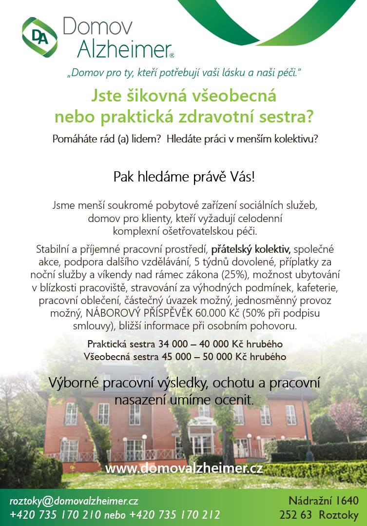 b) Domov Alzheimer Roztoky u Prahy z.ú., se sídlem Nádražní 1640, 252 63 Roztoky, IČ 024 56 826, zapsaný v rejstříku ústavů vedeném Městským soudem v Praze, oddíl U, vložka 646;